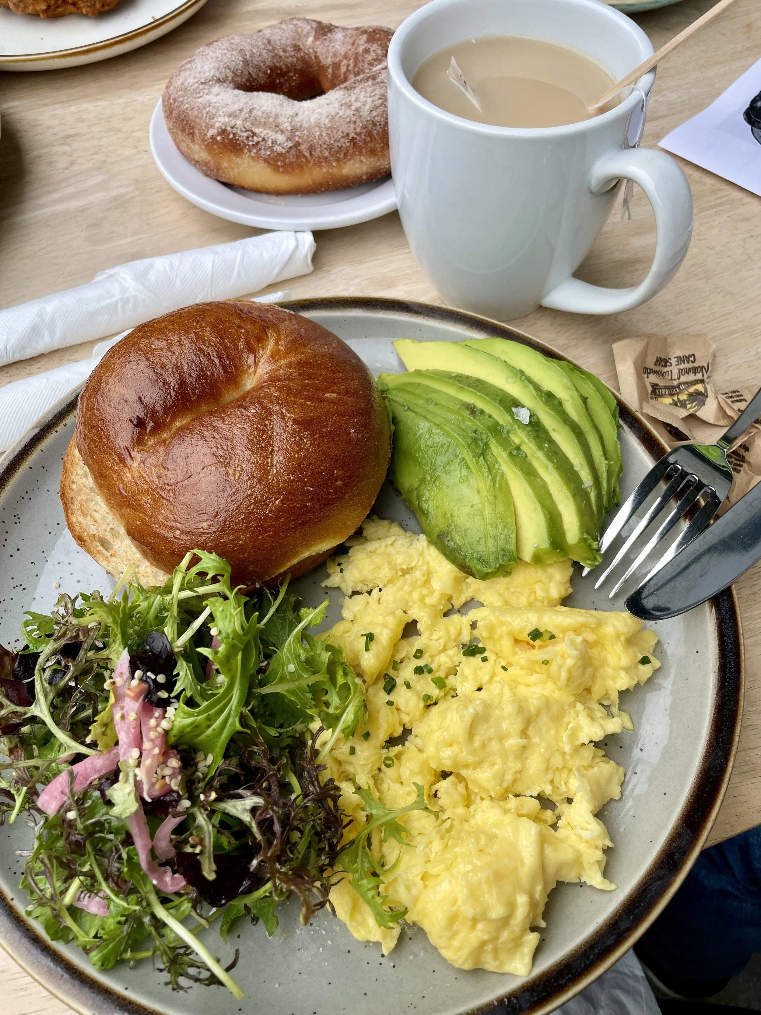 Because the wedding was late afternoon, we enjoyed a beautiful brunch at a local cafe. They specialize in bagels and fresh doughnuts. Eating outside with a cup of hot tea was a wonderful way to start the day. And yes, my husband so thoughtfully pointed out I left my teabag and stir stick in my cup before I took this photo. The Barista added too much milk to my cup so I needed to steep the tea a bit longer. (Where are the emojis when you need one?)