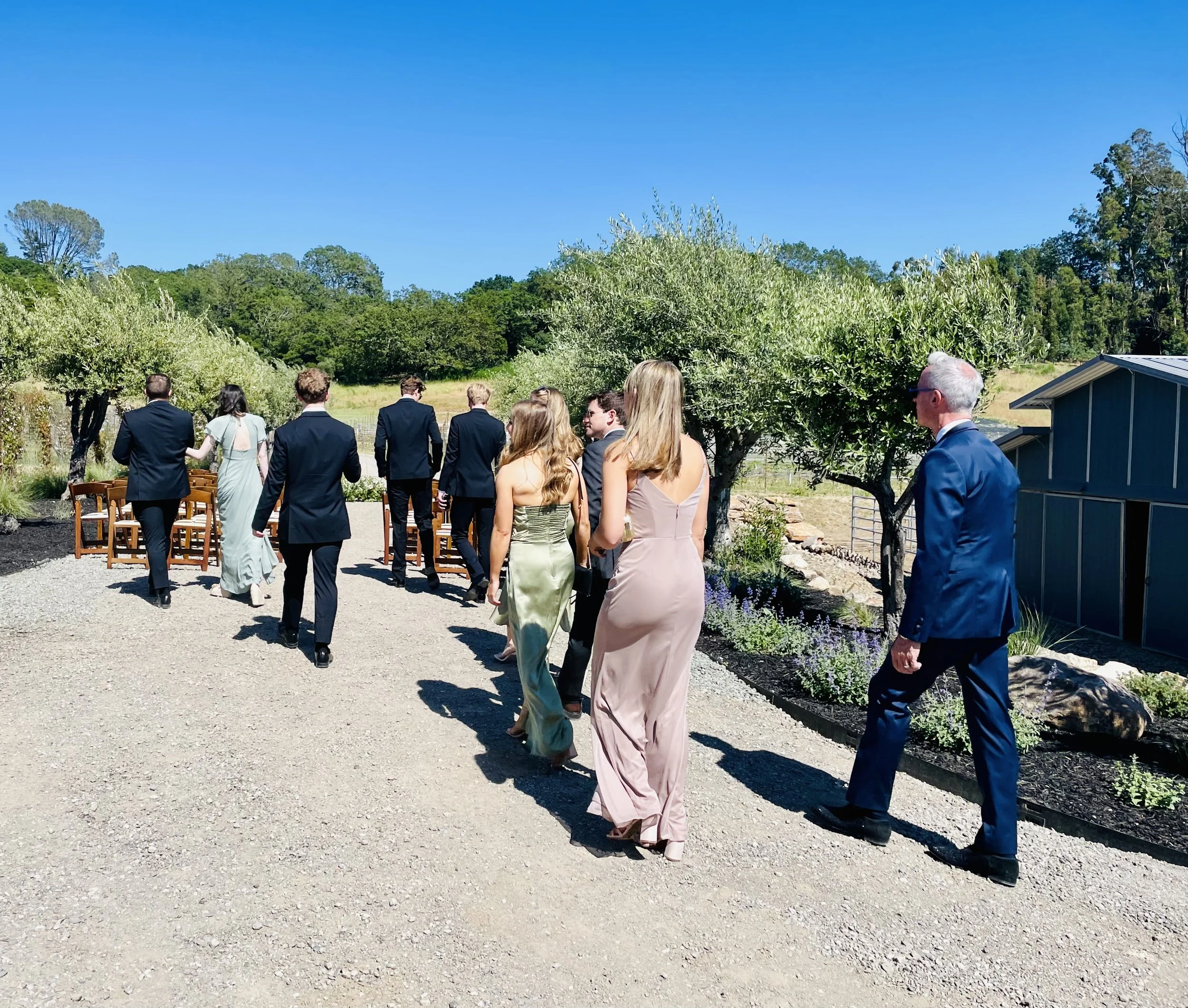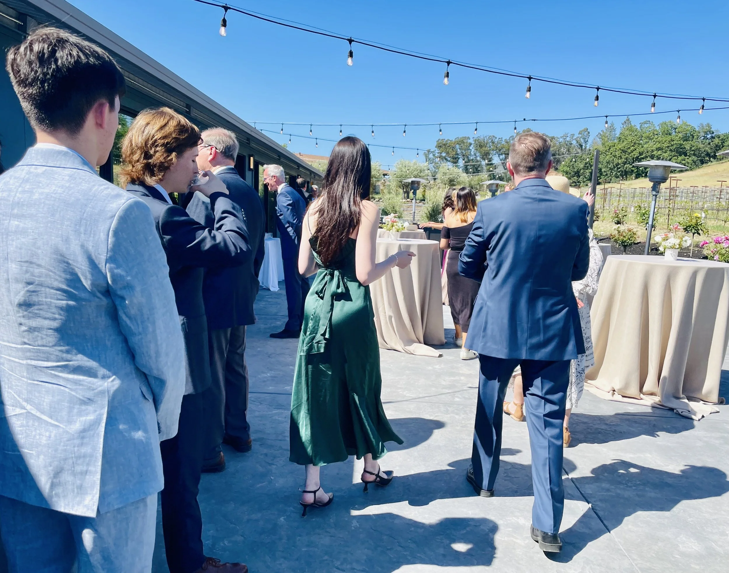 The wedding was held at a newly established vineyard and everyone gathered on the patio before the ceremony.
