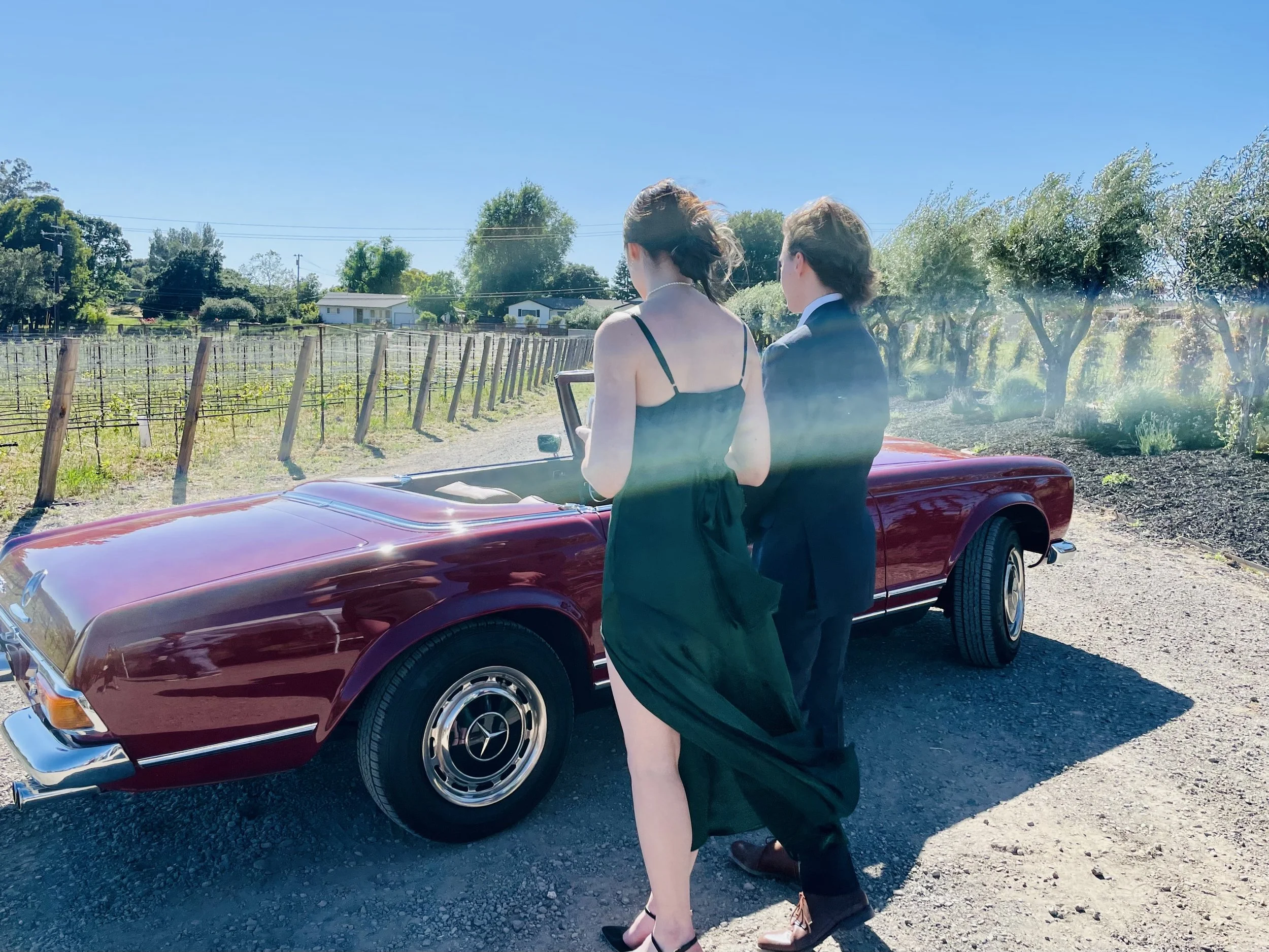 The beautiful bride arrived in a vintage convertible Mercedes, driven by her father.