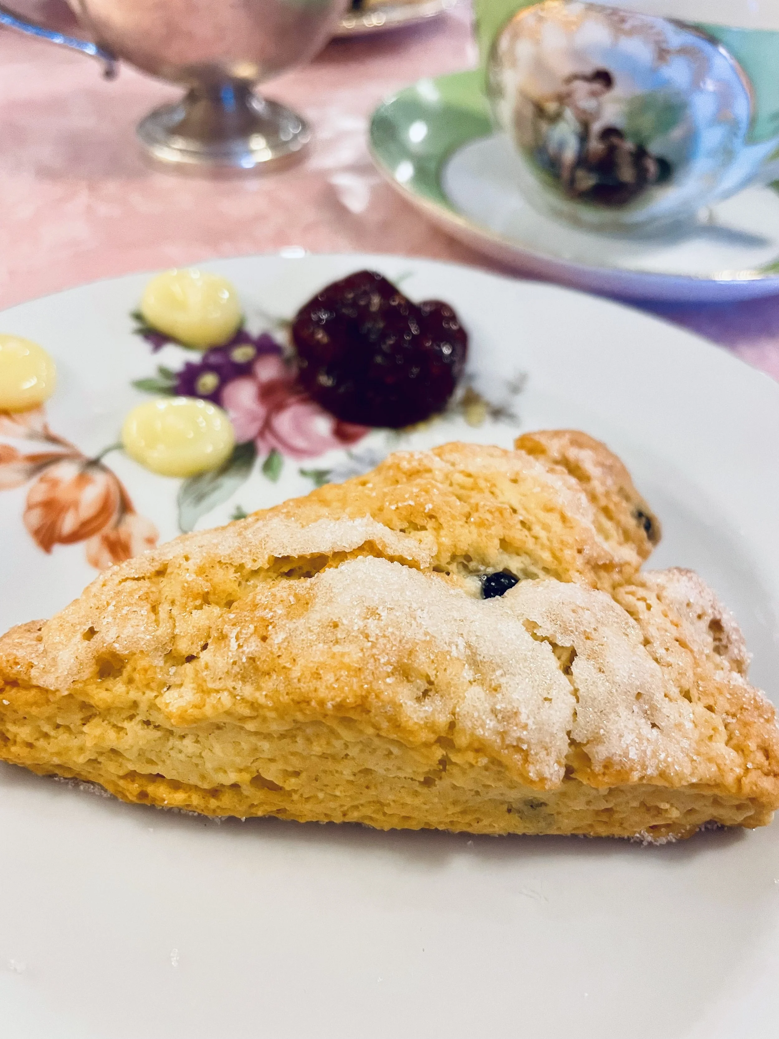 While we were both disappointed with the tea, I was anxious to taste the scone when it arrived. I wondered whether it came from a mix, as this is the place I was first introduced to the Iveta brand scone mix. I was pleasantly surprised with the sweet flavor. It was crunchy on the outside due to the dusting of sugar, but it was still moist in the center. And most importantly, it was fresh. I could tell it had been baked that morning. Yes, it was Iveta!