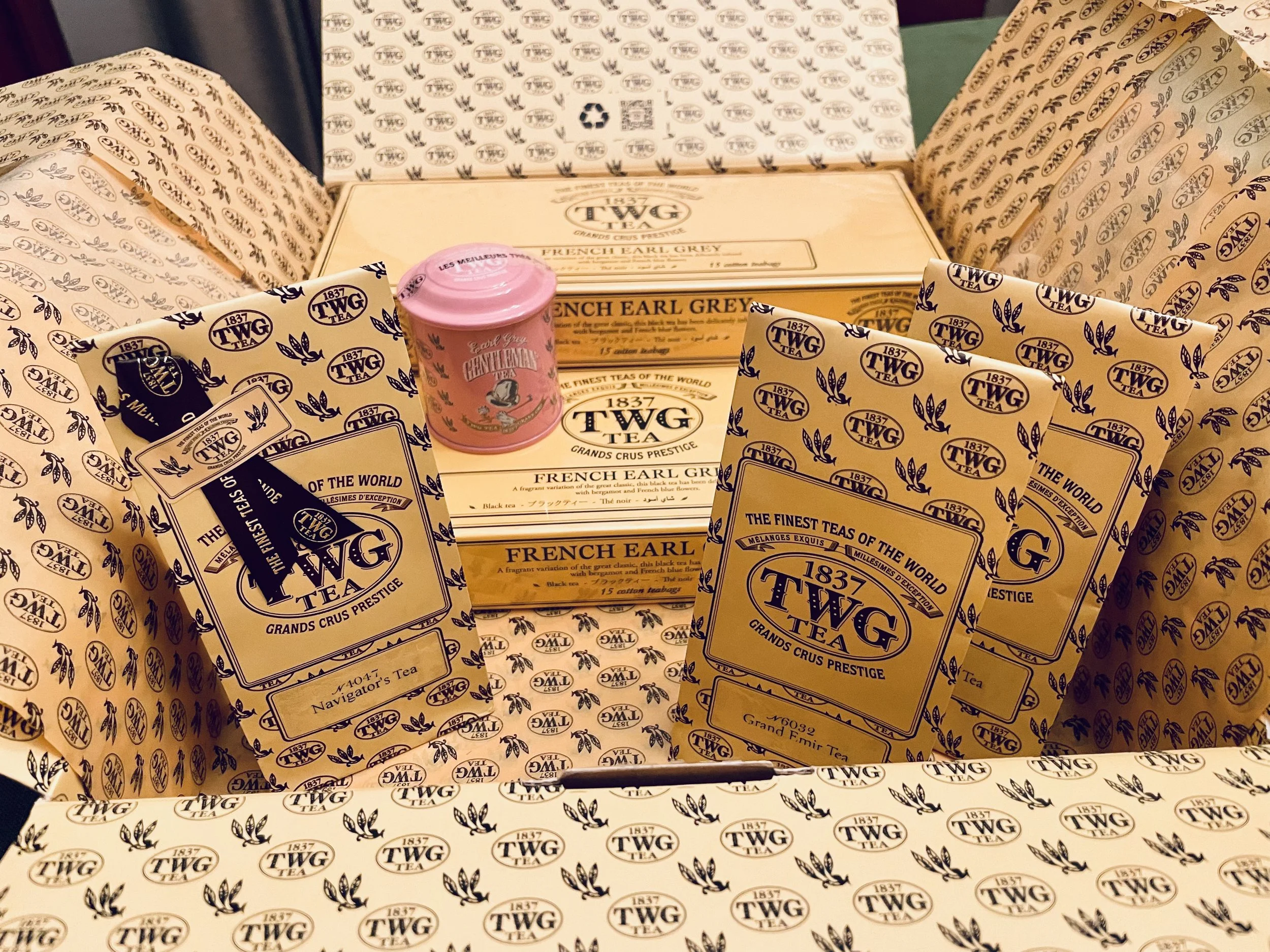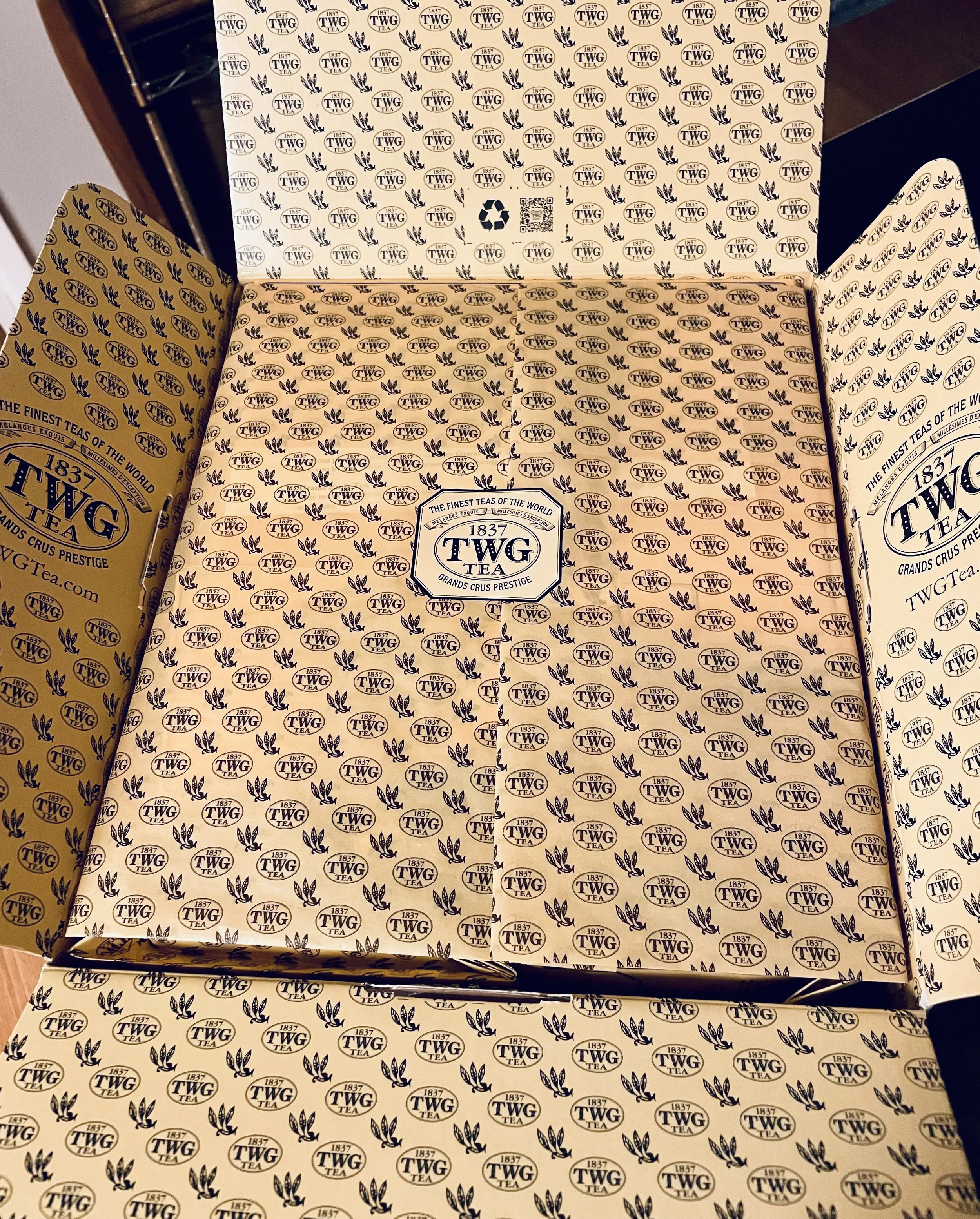 First of all, I was so surprised when my order arrived in only four or five days. It was shipped through DHL Worldwide from Singapore. The exterior of the container I received was literally a plain brown box. There were no distinct markings on it at all to even know it was a TWG product. In fact, I doublechecked the label to see who had sent it. But then you open it to find this!