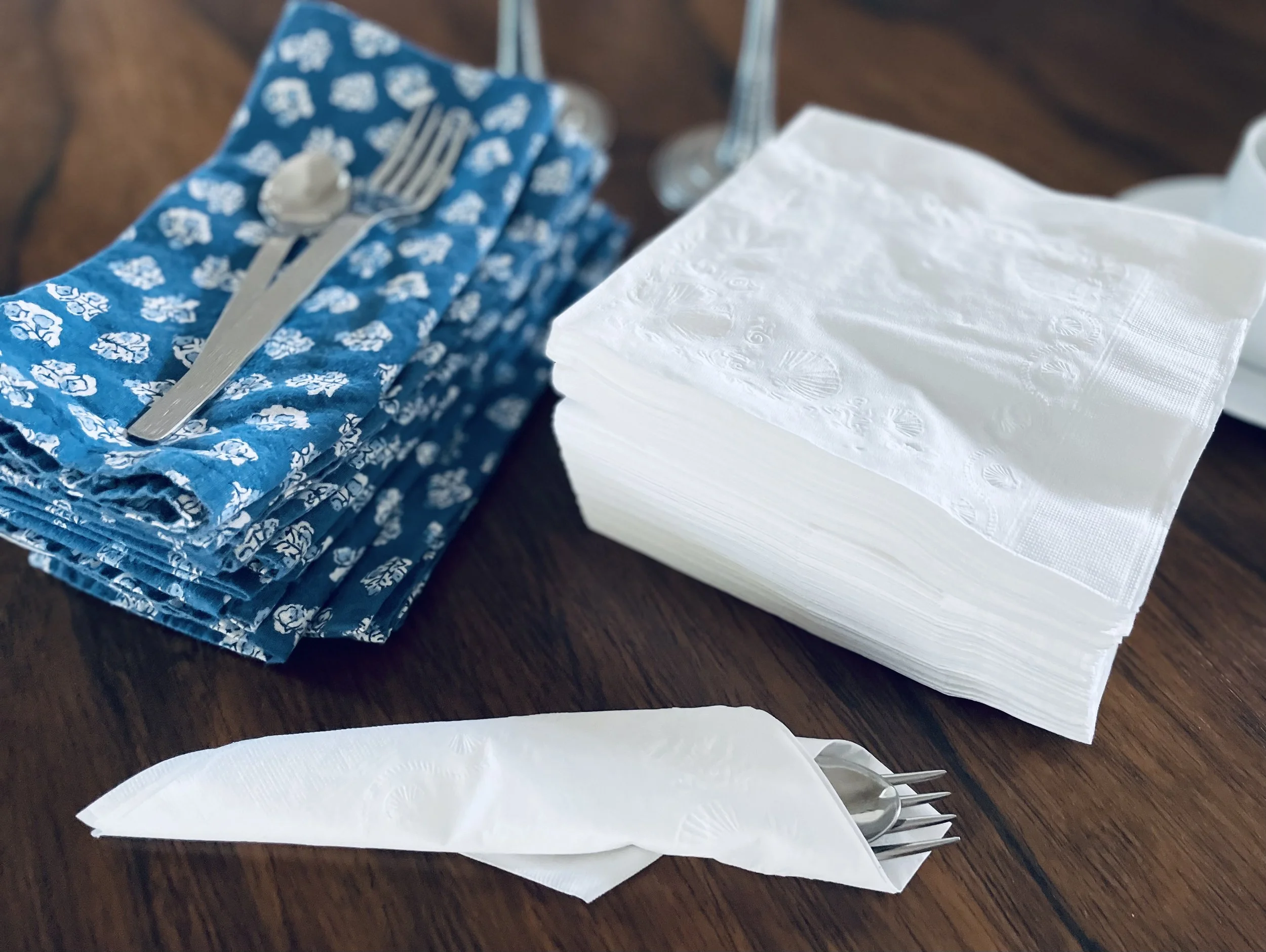 Wherever I go for Afternoon Tea, I want it to feel special. So, when I sit down to a cloth-laden table with lovely cups and saucers, I am sad to see the cutlery wrapped in a paper napkin/serviette. I know this may seem frivolous, but if the tea room is using cloth table coverings, why wouldn’t it use cloth napkins? There is something cheap about paper napkins and it doesn’t really fit the “vibe” of the place, as my kids would say.