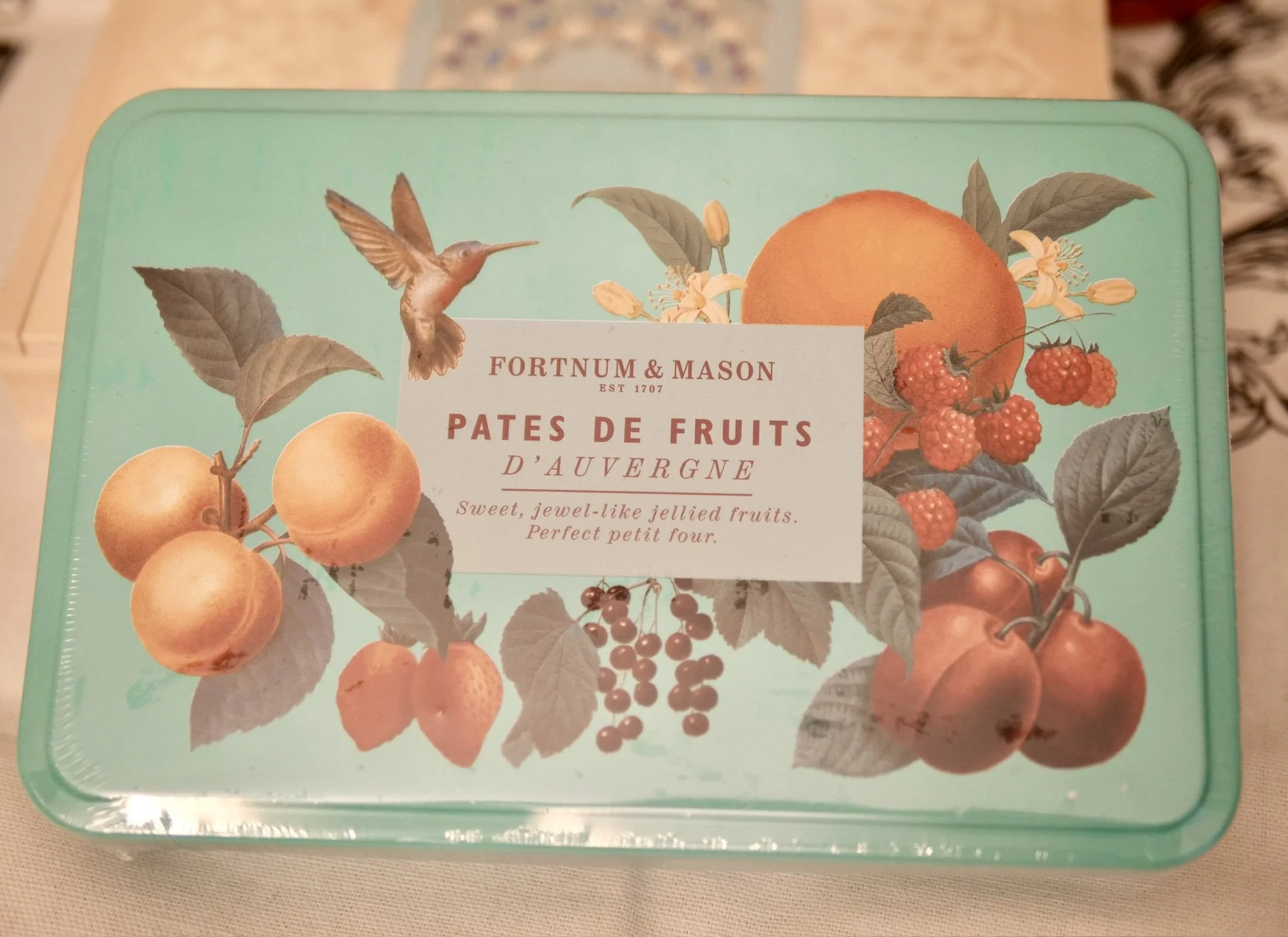 The first time I had pates de fruits was in Paris. It was the most amazing confection as the fruit flavors just burst in my mouth. I bought this as a gift for our family to share. The tin is so pretty, too!