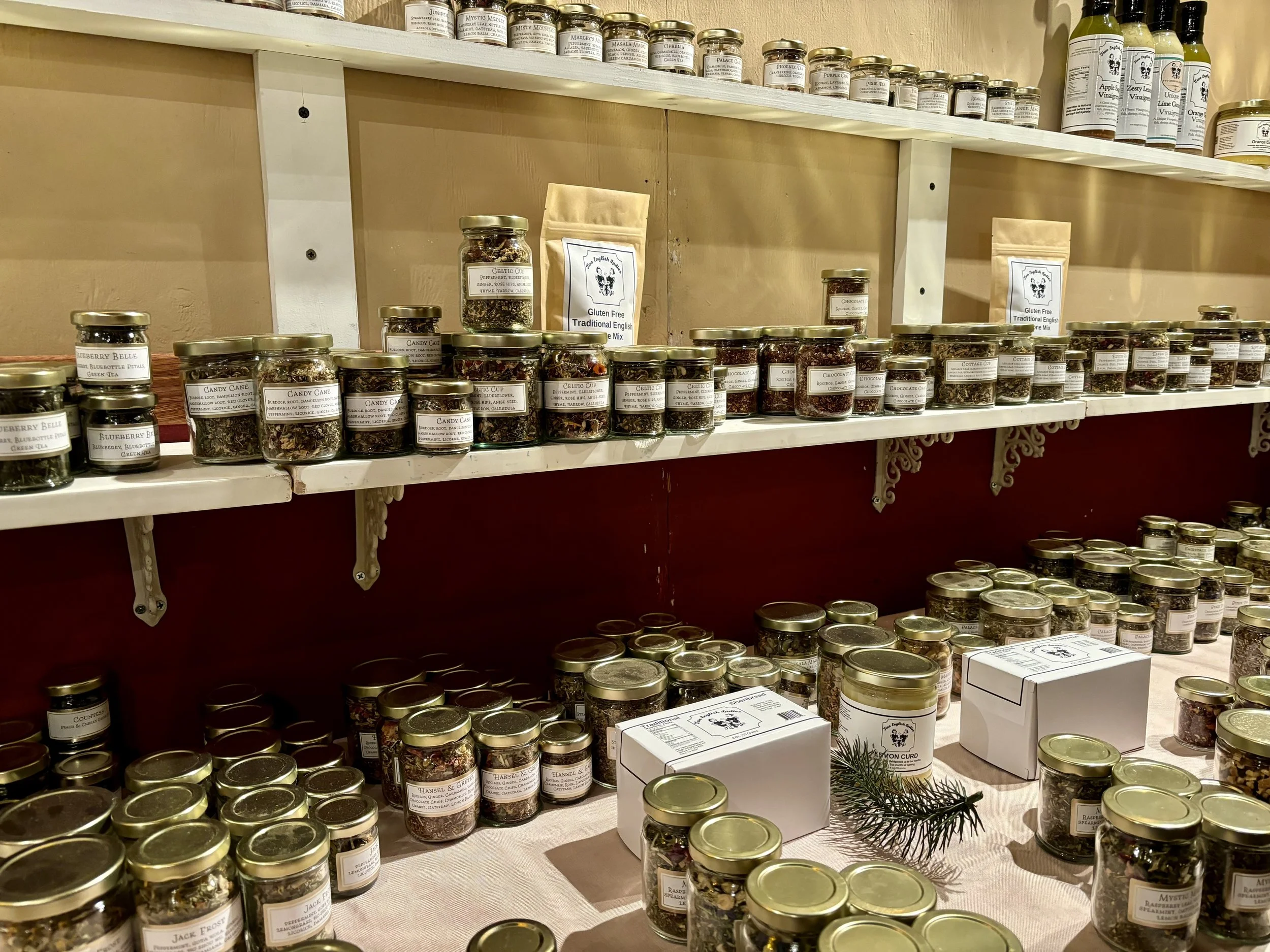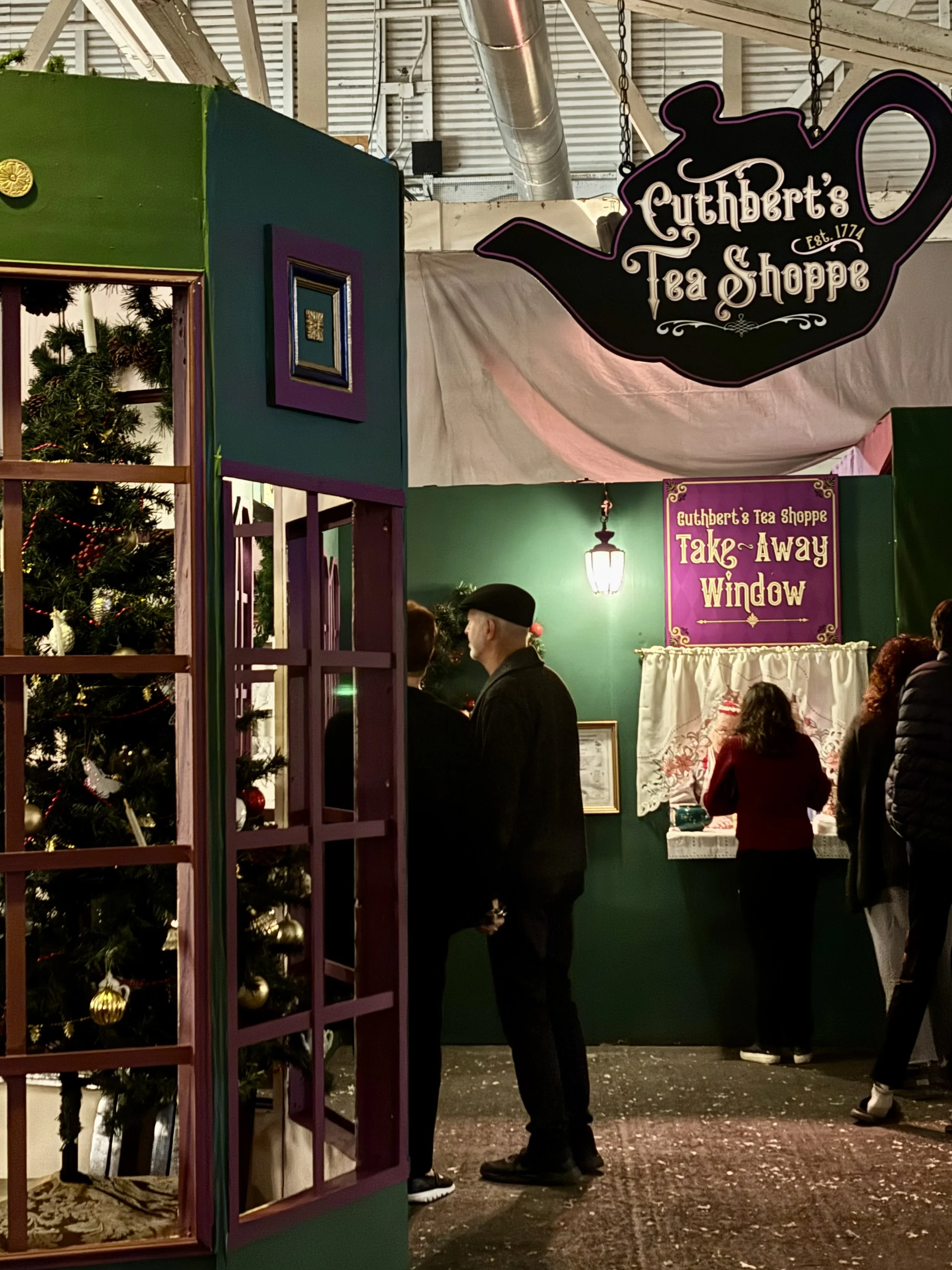 There are many vendors at the Dickens Fair selling their wares, including tea.