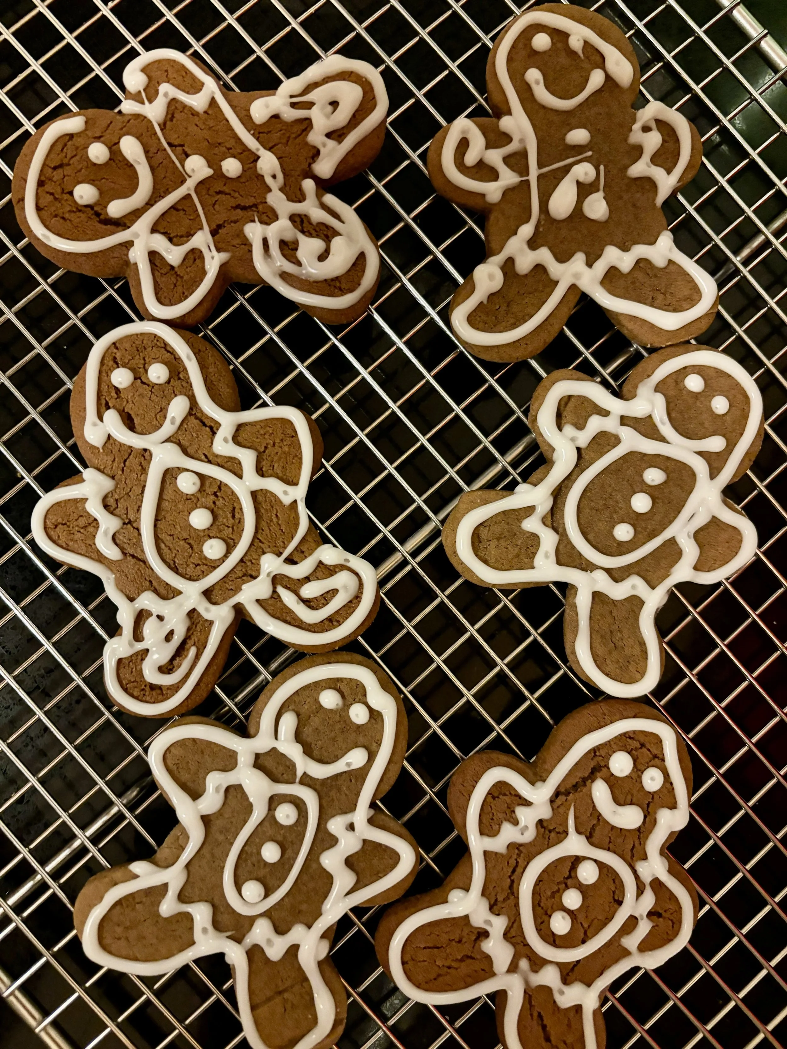 My husband thinks there isn’t enough icing on the gingerbread men. Therefore, I decided to make a few with extra icing on the not so good-looking ones. I think they’re better suited for Halloween!