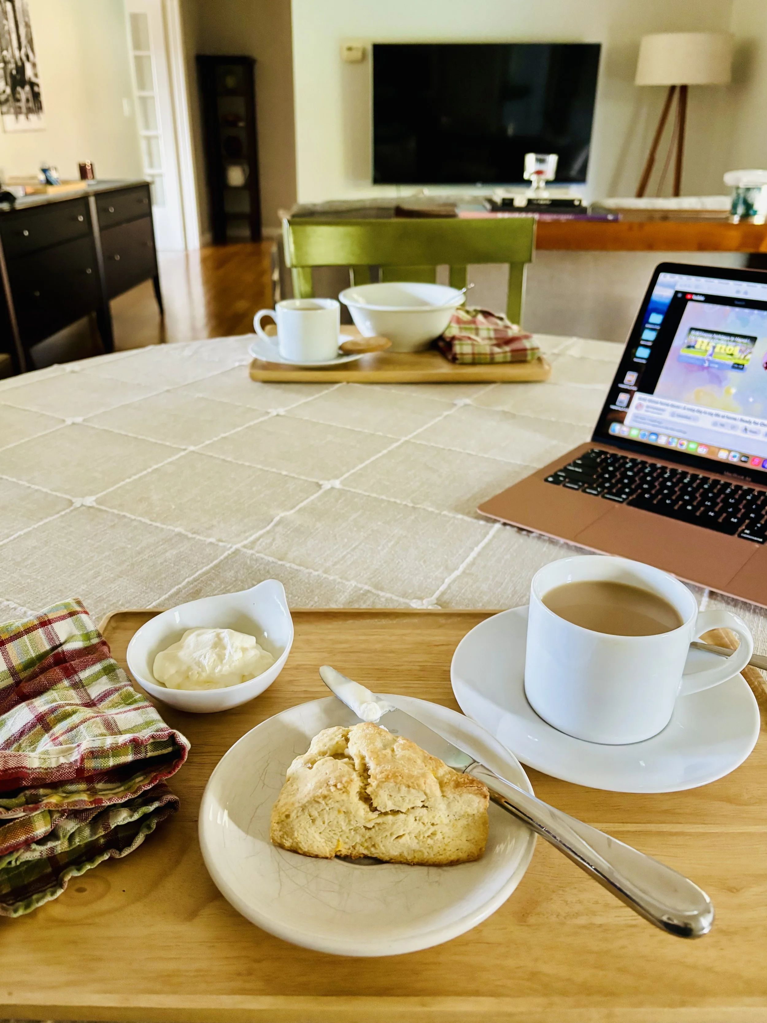 But this past Monday was my lazy day. It was also a national holiday so many people were home from work and school. It felt nice to sit at the table and have breakfast. My husband had his oatmeal and cup of tea while I had a scone, I had baked the day before. And you can’t have a lazy day without catching up on the favorite vloggers.