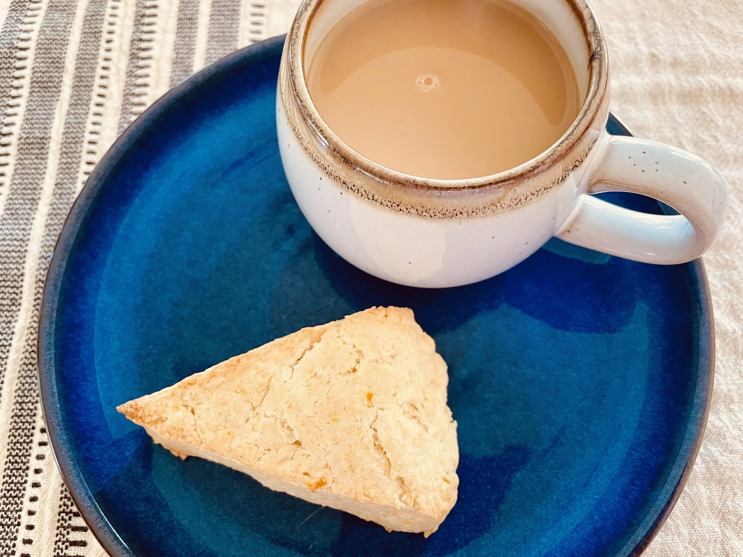 Traditional scones have very little sugar in them. Other than currents or raisins, they don’t contain additional fruits, nuts, chocolates and aren’t covered with drizzle. Traditional scones are then simply adorned with jam and cream. Americans, on the other hand, tend to love variety and make all sorts of scone flavors. So when I saw one that caught my eye, like this orange cranberry scone recipe from In Cookie Haven, I was tempted, but also not tempted to try it. While I love fresh oranges, I’m not overly keen on orange flavored cakes, cookies and sweets. But with dried cranberries in the cupboard and an orange tree in the backyard, I decided to take the plunge and just make them.