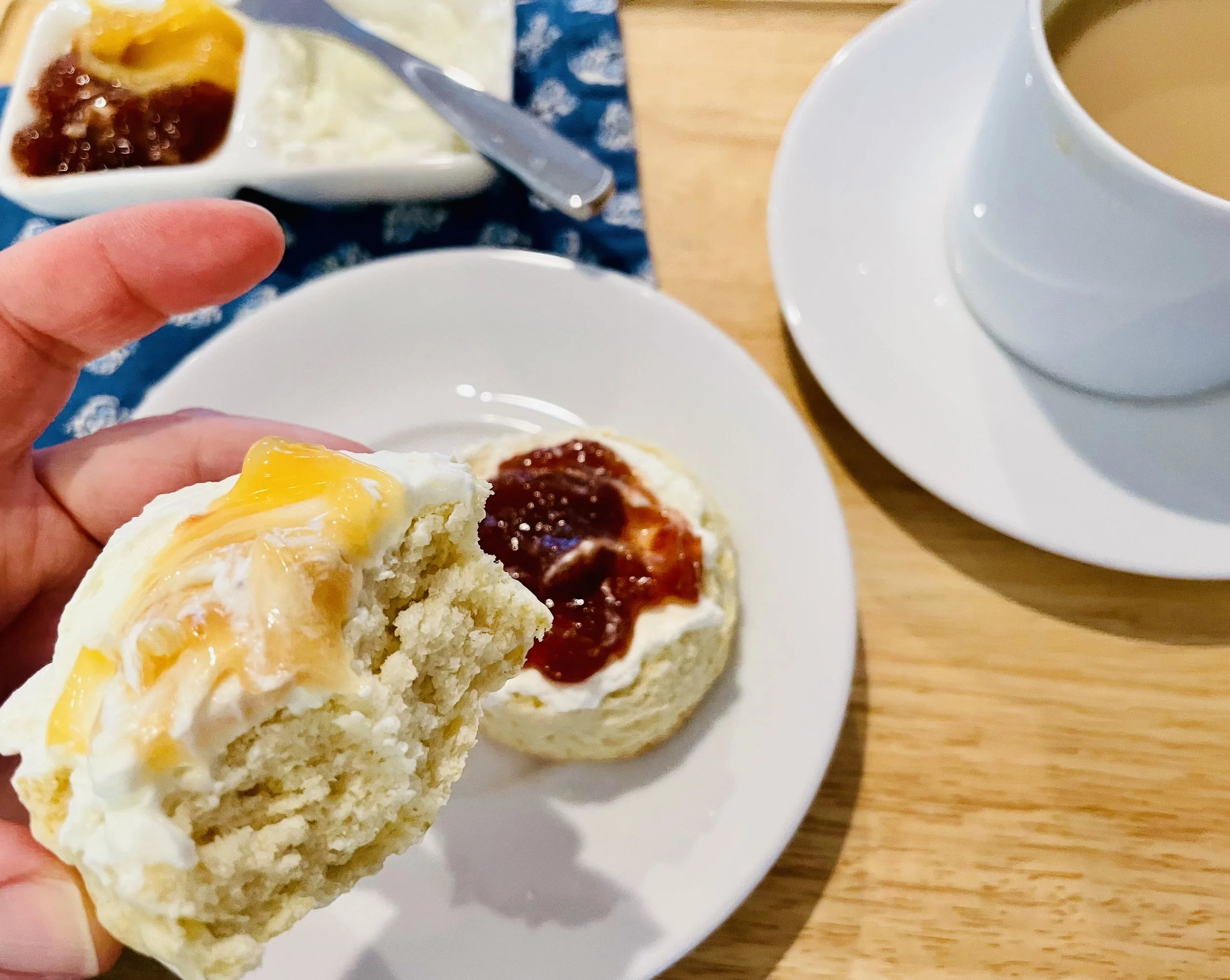 I made stiff cream, opened a new jar of my favorite strawberry jam and set it out with some lemon curd. I made myself sit down at the table with the fruits of my labor and a fresh pot of my favorite tea. Since having kids, I have a terrible habit of standing and eating when I’m on my own. But I wanted this to be my time. The dog would need to wait a little bit longer for her walk.
