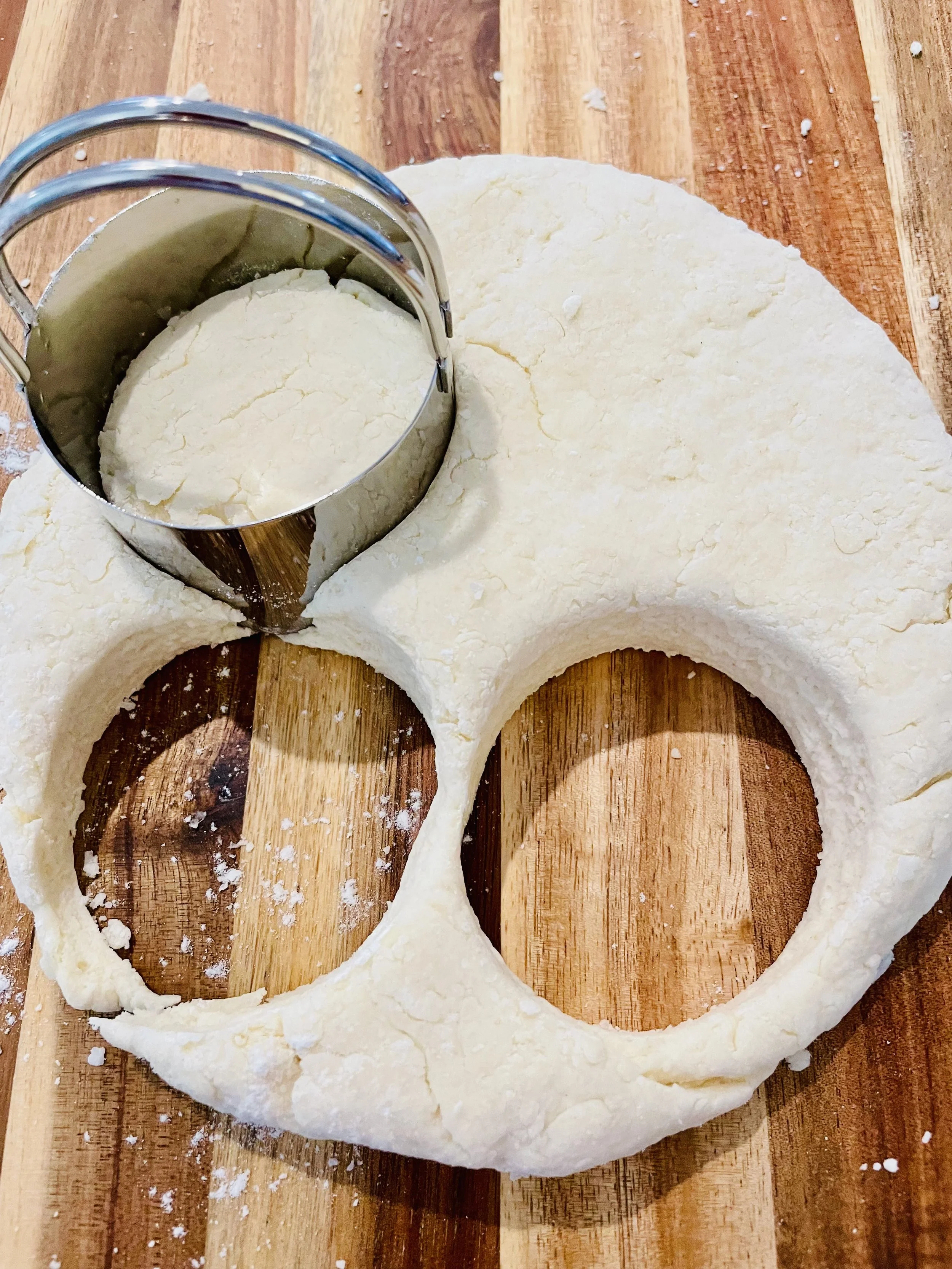 Over the years, the thickness I pressed or rolled out the dough increased. I was so frustrated when I couldn’t consistently bake tall beautiful scones. I watched countless videos and reviewed a ton of recipes. I knew I wasn’t overworking the dough, twisting the scone cutter or letting the egg wash or milk/cream glaze drip down the sides of the scones before baking. Then, it just hit me one day that I wasn’t rolling out the dough thick enough. I felt rather foolish for something so simple. But that’s why it’s called experience, right? The more you do, the more you learn.