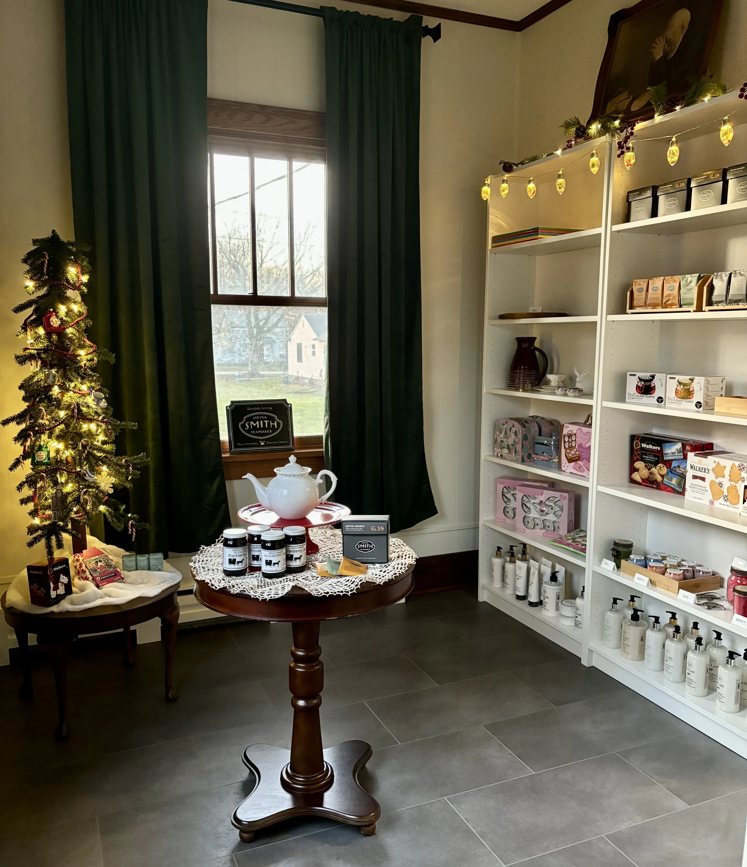 There is a small gift shop where customers can purchase the jams and teas that are served in the tea room, as well as tea sets, soaps, lotions, tea towels, candles, ornaments and cloth napkins.