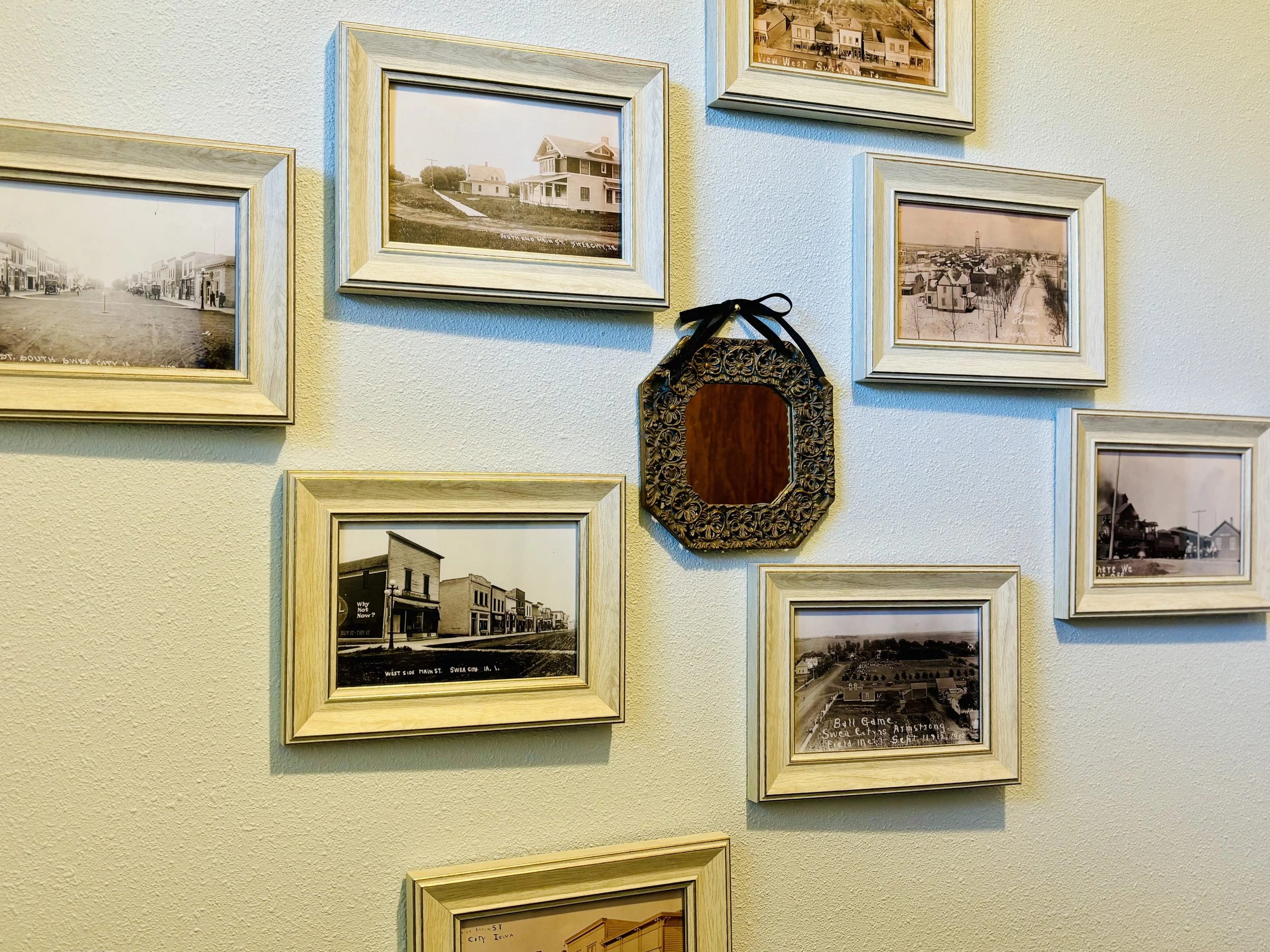This collage of old photos of my hometown adorns one of the walls in the bathroom.