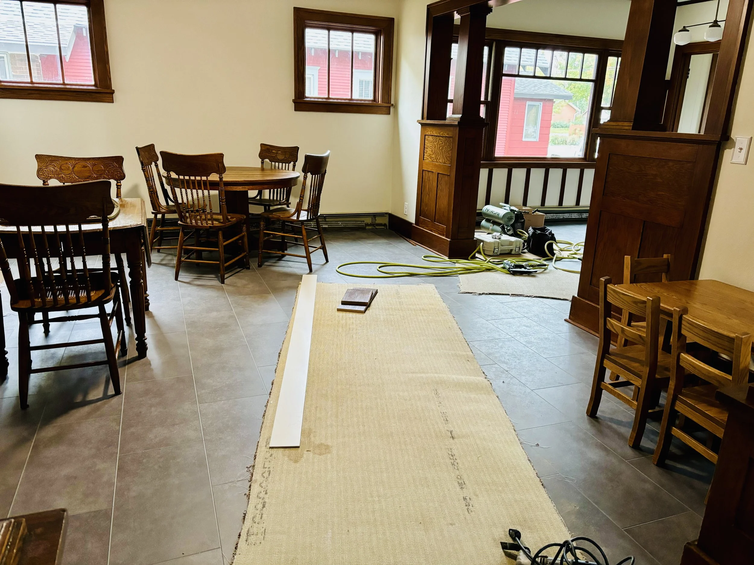 Eventually, things started to come together after the new floor was installed. My sister and I cleaned up the construction mess, scrubbed down the walls, floors, and woodwork. And after we carried in some of the furniture, we started to envision what the rooms would look like.