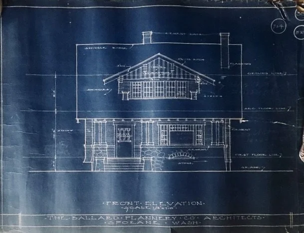 This is the front cover of the original blueprints of the 1920s house by Ballard Plannery Co Architects, Spokane, Washington.
