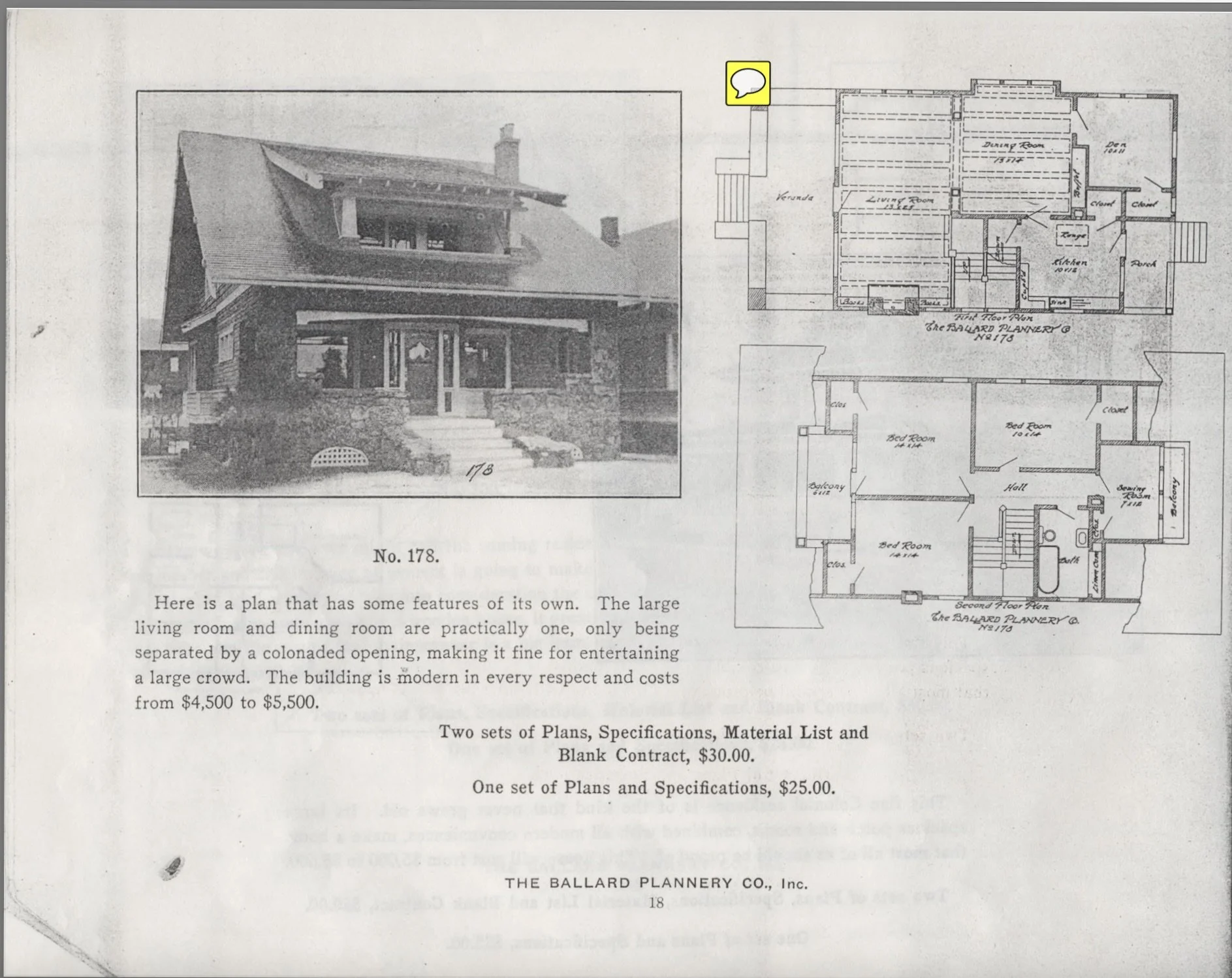 A listing from the Ballard Plannery book. This plan may be one of the most similar to Elmer and Belle’s home.
